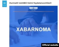 “Hurmatli UzASBO tizimi foydalanuvchilari, Server bilan bog'liq muammolarni bartaraf etish maqsadida, 23-dan 26-aprelgacha texnik ishlarni amalga oshirish va tizimni yangi serverga o'tkazish uchun tizimda uzilish kuzatilishi mumkin. Yuzaga kelgan noqulayliklar uchun uzr so'raymiz”.
