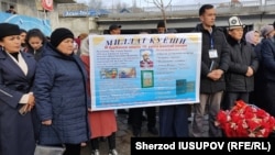 9 февраль куни Ўш шаҳри марказидаги Навоий номидаги истироҳат боғи кираверишида жойлашган Навоий ҳайкали ёнида адабиёт муҳлислари, расмийлар ҳамда мактаб ўқувчиларидан иборат юзга яқин одам йиғилди.