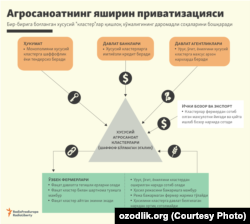 Ўзбекистонда эса янги хусусий “кластерлар” фермерларга қилган меҳнати учун етарли даражада пул тўламай туриб, қишлоқ ҳўжалигининг сердаромад соҳалари устидан давлат шу пайтгача юритиб келган узоқ муддатли назоратни гарданига олмоқда.