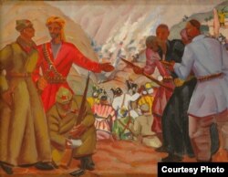 - Улар ўзларича ижод қилишганида гўзал суратлар чизишди. Кейин ҳукумат назари уларга тушди. Пул эвазига социалистик расмлар чизиб бер¸ дейишди. Бу рассомлар учун қийин палла бўлди. Кўплар синди¸ расмларни сифати ҳаминқадар бўлиб қолди. Туркистонни бешга бўлган Сталин режими рассомларни социалистик реализм деган тўрқовоқ ичига тиқди¸ дейди Александр Волков.