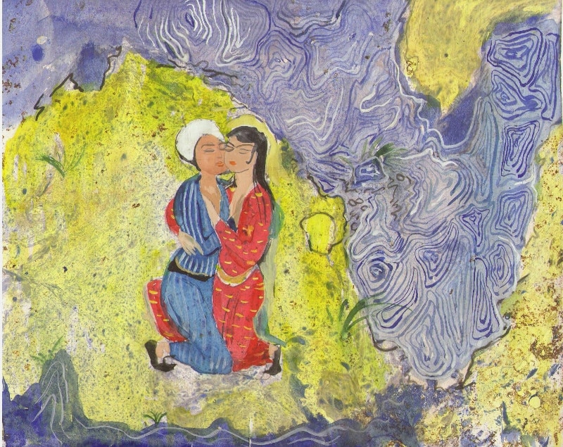 “Лайли ва Мажнун” 1999 йил. Қоғоз, сувбўëқ. Рассом шарқ миниатюрасидан таъсирланиб, бир неча туркум суратлар яратди. Бу асар ана шу туркум суратлардан бири. Суратнинг фони абру баҳор технологиясида яратилган.