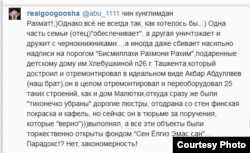 Битиклари давомида @realgoogoosha ўша - "бошқа қисм"нинг “Тошкентдаги Хлебушкина номидаги 26- болалар уйининг пештоғидаги "Бисмиллоҳу Раҳмону Раҳим" деган ёзувнинг зўрлик билан ўчириб ташлагани”га тўхталган.
