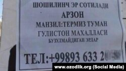 “Эр сотилади, бузулмайдиган эр”, деган эълон.
