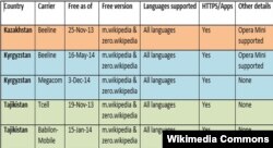 Wikipedia Zero лойиҳасида иштирок этаётган мамлакатлардаги (юқорида зикр этилган Қозоғистон, Қирғизистон ва Тожикистонда ҳам) йирик мобил алоқа операторлари ўз абонентларига Википедиядан бепул фойдаланиш имконини беради.