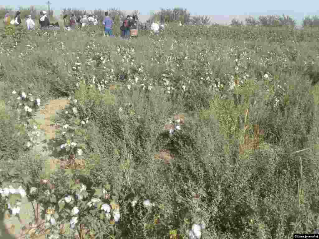 Тошкент вилояти Чиноз туманидаги пахтазорларга сафарбар қилинганларнинг баъзилари тиканзорларда пахта теришга мажбурланмоқда