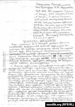 Унда маҳкум Ўзбекистон Республикаси Бош прокурори Ихтиёр Абдуллаев ва Ўзбекистон Республикаси Олий Мажлисининг инсон ҳуқуқлари бўйича вакили Улуғбек Муҳаммадиев номига йўллаган шикоят хатлари ўз манзилига етиб бормаганини айтган.
