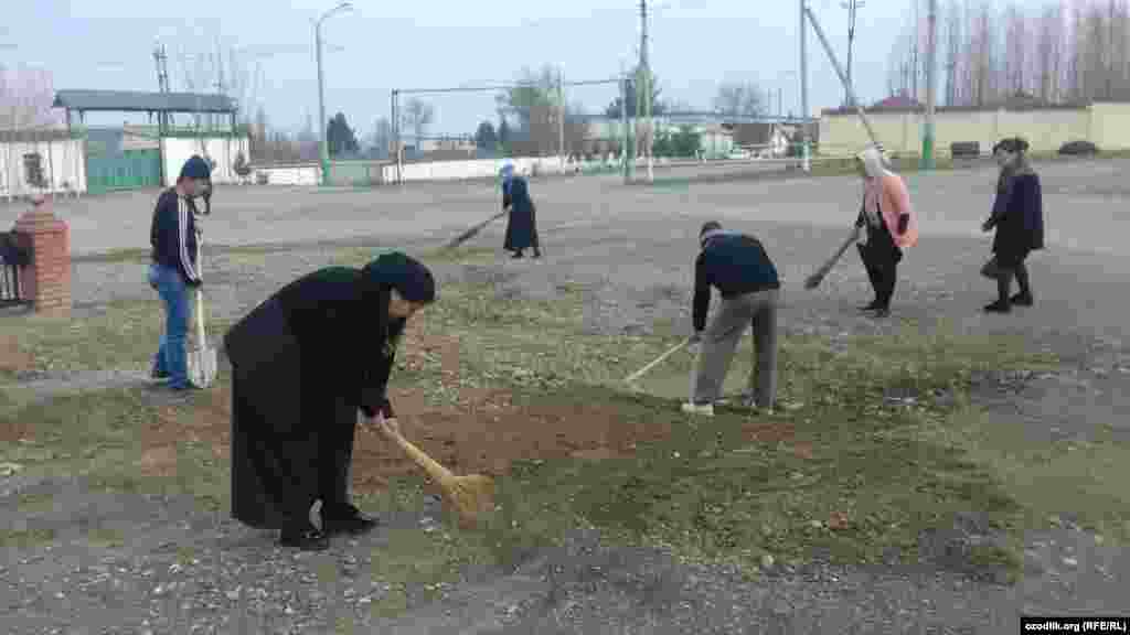 Андижонлик ўқитувчилар шаҳар ҳокими Дилмурод Раҳматуллаевнинг буйруғи билан шаҳар боғ ва кўчаларини тозалашга чиқарилди.