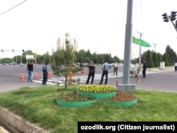 "Йўл белгилари янги бўлсин, ялтираб турсин дейишган бўлса, керак туркман президенти келадиган кун эрталаб бўяб чиқишди" дея тошкентлик қиз воқеа жойидан фотоларни Озодликка йўллади.