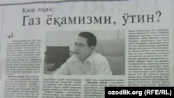 “Ўзбекистон аҳолиси ўтин эмас, албатта газ ёқади!” деб баёнот берди “Ўзтрансгаз” акциядорлик жамияти бошқарма бошлиғи Акмал Эшонқулов (“Ҳуррият”, 3 октябрь). Газетага кўра, “Ўзтрансгаз” ширкати кўп йиллардан буён муаммолар гирдобида қолмоқда. Аҳолининг эса ушбу ташкилотга, умуман, газ тақсимотига ишончи сусайган. Ширкат вакили Акмал Эшонқулов эса тизимда инновацион технологиялар жорий этиш, газ тармоқларини реконструкция қилиш ишлари олиб борилаётганини қайд этган. Масалан, келгуси йилдан суюлтирилган газ таъминотида автоматлаштирилган тизим жорий этиш режалаштирилган. Бунга кўра, ҳар бир фойдаланувчига ҳисоб-китоб учун индивидуал электрон карта берилади. Бу эса суюлтирилган газ сарфини масофадан назорат қилиш имконини беради. Маҳаллий аҳоли мамлакат ўз газини чет элга сотаётгани сабабли оддий халқ ўтин ва тезак ёқишга мажбур бўлаётганидан шикоят қилиб келади. Тизимдаги янги технологиялар хусусида маълумот берган “Ўзтрансгаз” расмийси хорижга табиий газ экспорти масаласига ойдинлик киритмаган.