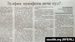 Сурхондарё вилояти Термиз халқ таълими бўлими мансабдори Зулфия номидаги давлат мукофоти учун пора олгани фош этилди (“Ҳуқуқ”, 20 июнь). Исми ошкор этилмаган аёл халқ таълими бўлими шўъба мудири вазифасида ишлаган. Мансабдор қизи Зулфия мукофоти учун танловда қатнашишини истаган онага иқтидорнинг ўзи камлик қилиши, тепадагиларга пора ҳам бериш кераклигини айтган. Вилоят босқичи ғолиблиги учун дастлабки тўлов сифатида 200 доллар пора талаб қилган. ХТБ шўъба мудири пора устида қўлга олинган. Қайд этиш жоизки, кейинги йилларда маҳаллий матбуотда Зулфия мукофотини бериш жараёнидаги тамагирлик ва найранглар ҳақида бир қатор мақолалар эълон қилинмоқда.