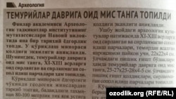 Фанлар академияси Археологик тадқиқотлар институти мутахассислари Навоий вилоятида қадимий ёдгорлик – қўриқлаш минораси қолдиғини топди (“Оила даврасида”, 12 сентябрь).