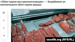 Мамлакат бўйлаб ҳокимликлар гўшт нархини пасайтириш учун гўшт сотувчилардан нархни туширишни талаб қилади. Қайд этилишича, улар бу билан нарх янада кўтарилишига сабаб бўлмоқда, холос.