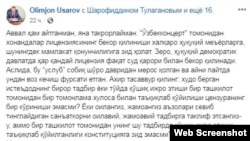 “Ўзбекконцерт” томонидан хонандалар лицензиясининг бекор қилиниши халқаро ҳуқуқий меъёрларга, шунингдек, мамлакат қонунчилигига зид ҳолат. Зеро, ҳуқуқий демократик давлатда ҳар қандай лицензия фақат суд қарори билан бекор қилинади. Аслида, бу “услуб” собиқ шўро давридан мерос қолган ва айни пайтда ундан воз кечиш фурсати етган”, деб ёзди Олий суднинг собиқ матбуот котиби Олимжон Ўсаров.