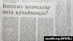 Ўзбекистонда иш вақти ходимларнинг ҳалок бўлиши ҳолатлари йилдан-йилга кўпаймоқда (“Ҳуррият”, 8 январь). Бу ҳақда Бандлик ва меҳнат муносабатлари вазирлиги давлат меҳнат инспекцияси раҳбари ўринбосари Абдувоҳид Шаропов маълум қилган. 2017 йилда 456 та бахтсиз ҳодисада 519 нафар ходим жароҳатланган ва улардан 162 нафари вафот этган. 2018 йилда 553 та бахтсиз ҳодисада 667 нафар ишчи лат еган ва улардан 182 нафари ҳаётдан бевақт кўз юмган. 2019 йилда бу кўрсаткич янада ошган. Қайд этилишича, бир йил давомида давлат меҳнат инспекциясига бу борада 20 минг зиёд шикоят келиб тушган. Вазирлик вакили иш пайти ҳалок бўлган ходимларга тегишли товон пули тўлангани масаласига ойдинлик киритмаган.