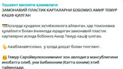 Маънавият маркази масъул ходими: “Замонавий пластик картани Амир Темур кашф этган”