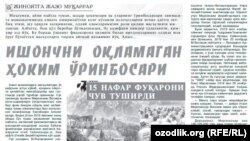 Сўх ҳокими ўринбосари умра зиёратига отланган 15 кишини чув туширди. Актёр Матёқуб Матчонов 2016 йилда кимнинг кўрсатмаси билан қамоққа олинганини очиқлади. Жорий ҳафта матбуот шу каби воқеалар ҳақида хабар берди.