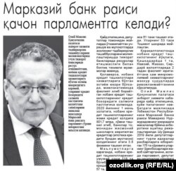Олий Мажлис Қонунчилик палатаси тадбиркорлик ташаббусларини молиялаштиришга доир муаммолар юзасидан Марказий банк раисига парламент сўрови юборди (“Миллий тикланиш” газетаси, 29 июль).