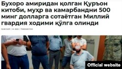Бухоро вилоятида амир Музаффархондан қолган нодир осори атиқаларни алдов йўли билан сотишга уринган собиқ ИИБ ҳамда Миллий гвардия ходими қўлга олинди (www.sof.uz, 10 август).