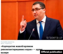 “Ўзбекистонда корпоратив жавобгарлик ривожланмай қолган. Ҳамма нарса маъмурий жавобгарлик, жиноий жавобгарлик – жисмоний шахслар учун. Шахсга эмас, компанияга нисбатан корпоратив жавобгарлик ривожланиши керак. Шунда масъулият бўлади. Ҳаттоки коррупция масалаларида ҳам жиноят ҳуқуқида корпоратив жиноий жавобгарликни ривожлантириш керак”, - деган Р.Давлетов.