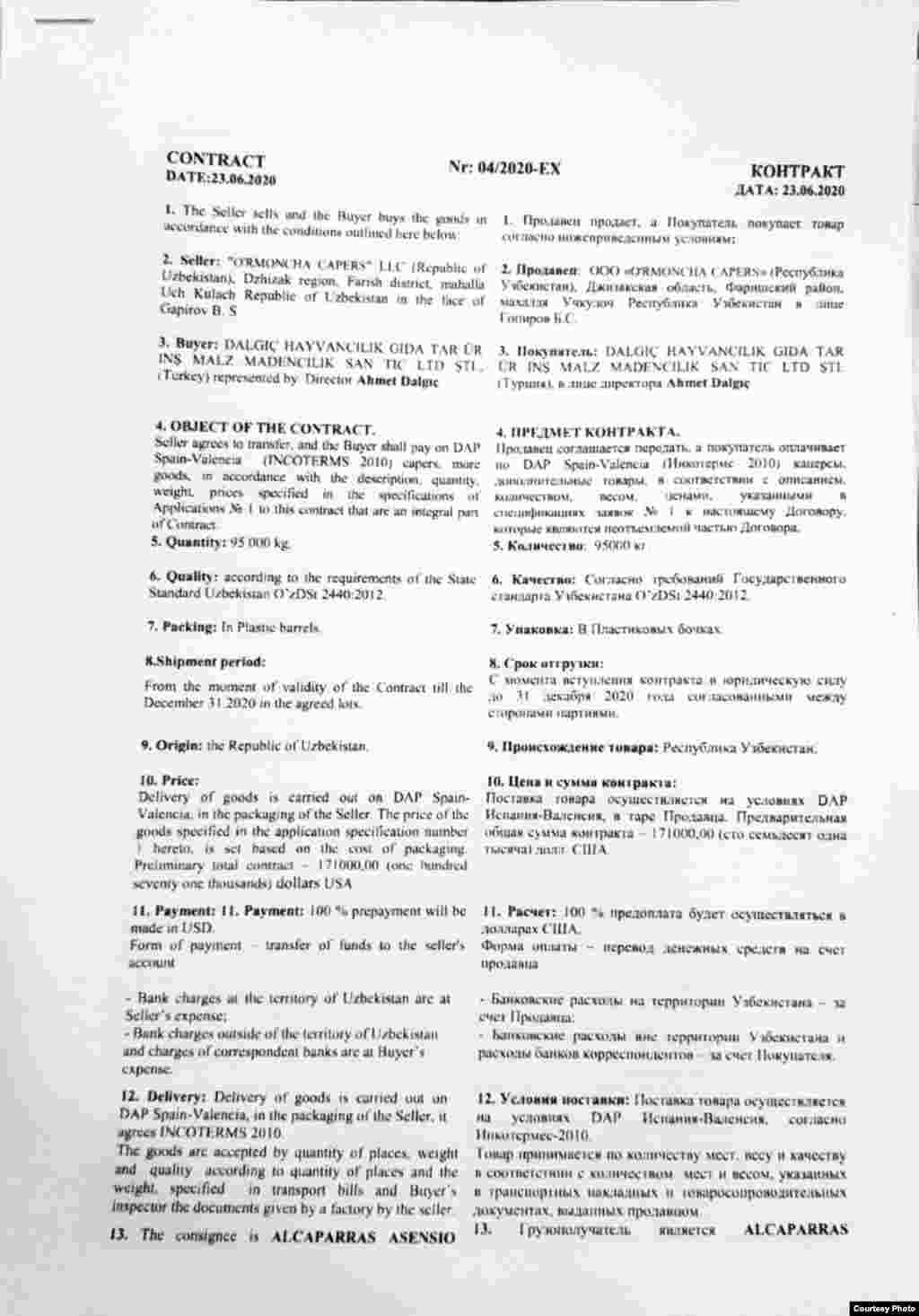 “O’rmancha- capers” ва “Dalgic Hayvancilik” ўртасидаги шартнома