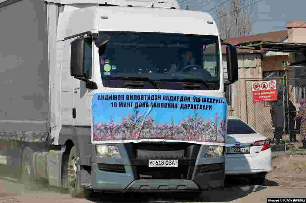 Кўчатлар қўшни Андижондан Қирғизистоннинг иккинчи пойтахтига совға сифатида юборилган.