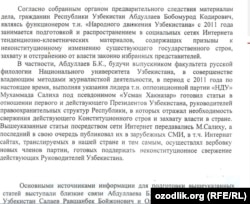 Дастлабки тергов хулосасига кўра¸ журналист Бобомурод Абдуллаев Усмон Ҳақназаров тахаллуси билан Интернетда мавжуд конституциявий тузумни ағдаришга қаратилган материалларни тарқатиш йўли билан ҳокимиятни қонуний сайланган шахслардан тортиб олишни режалаган. Дастлабки тергов хулосасига асосланган Жиноят ишлари бўйича Юнусобод туман суди 1 октябрь куни Абдуллаевни 10 кун МХХ ҳибсхонасида сақлаш ва шу муддат ичида унга қарши жиноий иш очиш ҳақида қарор чиқарди.