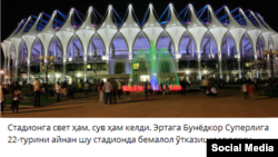 "Бунëдкор" стадионидаги аҳволдан бевосита хабардор тошкентликларнинг Озодликка билдиришича¸ мамлакатнинг энг янги ва йирик ўйингоҳи 14 августдан бошлаб сув¸ электр ва газсиз қолдирилган.