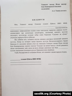 Жумладан, Тошкентнинг Олмазор тумани Ички ишлари бўлими ходими “Саховат ва кўмак” жамғармасига пул ўтказиш бир марталик эмаслигини айтиб, бу борадаги ариза бланкаси нусхасини Озодликка тақдим қилди.