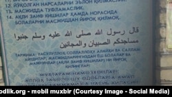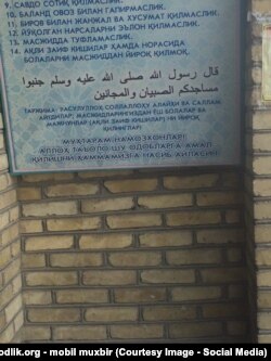 Озодликка Андижондаги масжидлардан бирининг дарвозасига осиб қўйилган эълон фотонусхаси йўлланди ва унда "норасида болалар"ни Ислом пайғамбаридан қолган ҳадис асосида "масжиддан йироқ қилинг" дейилган.