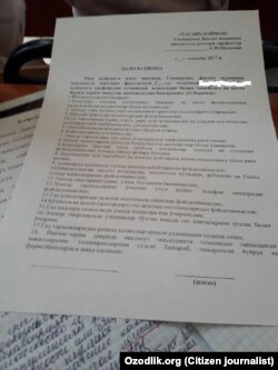Озодлик архивидаги яна бир тилхат 2014 йили ёзилган бўлиб, тилхат ёзиш тажрибаси корхона, ташкилот, муассаса ва ўқув юртларидан хонадонларга ҳам кўчганига далилдир. Сирдарё вилоят, Мирзаобод туманидан келган бу ҳужжатга қўл қўйган фуқаро ўз зиммасига оиласидан бир киши пахта теримига қатнашиб, кунига 60 килодан пахта териб бермаса, жазоланишга тайёр эканлигини билдирган.