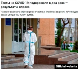 Пандемия даврида Ўзбекистонда дори-дармонга талаб юқори бўлгани сабабли хусусий дорихоналар вирусга қарши дориларнинг нархини оширган; ковид тестлари нархи ҳам деярли икки баравар – 250 минг сўмдан 400 минг сўмгача кўтарилган (www.spot.uz, 16 ноябрь).