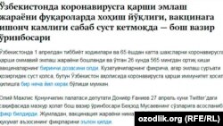 Ўзбекистон бош вазири ўринбосари Беҳзод Мусаев коронавирусга қарши эмлаш жараёни суст кетаётгани асосий сабабини маълум қилди (www.daryo.uz, 27 апрель). Қайд этилишича, 65 ва ундан катта ёшдаги фуқаролар орасида эмланишга рози бўлаётганлар сони камлиги вакцинага нисбатан ишончнинг пастлиги билан боғлиқдир.
