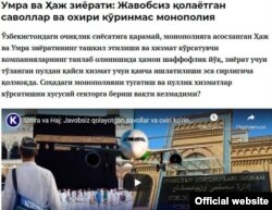 “Ўзбекистондаги очиқлик сиёсатига қарамай, монополияга асосланган Ҳаж ва Умра зиёратининг ташкил этилиши ва хизмат кўрсатувчи компанияларнинг танлаб олинишида ҳамон шаффофлик йўқ, зиёрат учун тўланган пулдан қайси хизмат учун қанча ишлатилиши эса сирлигича қолмоқда. Соҳадаги монополияни тугатиш ва пуллик хизматлар кўрсатишни хусусий секторга бериш вақти келмадими?” деб ёзади нашр.