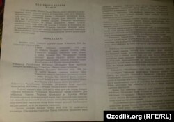 Омонов бир неча ҳужжат нусхасини Озодликка йўллади.