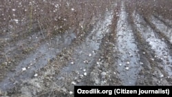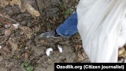 "Мана бизнинг пахтадаги ҳолимиз. Коллеж ўқувчиларимиз. Мажбур чиқаряпти пахтага. Лойда пахта теришга мажбурмиз. Андижон вилояти Бўз тумани".