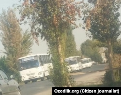 "Асака туманидан ёзмоқдаман. Асака туманида жойлашган ташкилотлар, ҳокимият идораси ва ЎзДЭУ ходимлари биргаликда пахта теримига олиб кетилмоқда. Ичида банк ходимлари ҳам бор. Суратларда кўришинг, автобуслар колонаси уларни далаларга олиб кетмоқда".