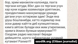 (Бу хабар "Paxtagram"га 30 октябрь куни келган.)