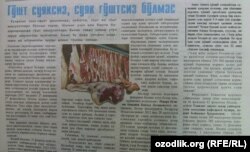 Тошкент шаҳри бозорларида гўштга меъёрдан ошиқ суяк қўшиб сотиш одатга айланмоқда (“Жамият”, 3 март). Масалан, Юнусобод деҳқон бозорида бир ярим кило гўштга 500 граммдан ошиқ, Эски жўва деҳқон бозорида эса бир кило гўштга 250-300 грамм суяк қўшиш қассоблар учун оддий ҳол саналади. Тошкент давлат аграр университети доценти Боймамат Қаҳрамонга кўра эса, 1 кило гўштда 150 граммдан ортиқ суяк бўлмаслиги керак, чунки, дейлик, тирик вазни 500 кило бўлган буқадан ўртача 280 кило гўшт олинса, унинг 15 фоизини суяк ташкил қилади. Газета истеъмолчиларнинг талаби асосида бозорлардаги сотувчиларнинг хатти-ҳаракатини жиддий назоратга олиш лозимлигини таъкидлайди.
