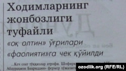 Бухоро вилояти Шофиркон туманида пахта ўғрилиги билан боғлиқ икки жиноят фош этилди (“Постда”, 8 октябрь). Шу туманнинг Искогаре қишлоғида яшовчи уч нафар фуқаро “Аббос Абдураҳмон Баҳриддин” фермер хўжалигига қарашли бир тонна пахтани тунда “Форд” русумли автомашинада ўғирлаб кетаётганда ушланган. Шу каби жиноят Жўнав қишлоғида ҳам қайд этилган. Хабарга кўра, пахта ўғрилиги ички ишлар ва маҳалла вакиллари жонбозлиги туфайли фош этилган.
