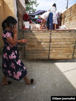Фарғона вилоят, Риштон туман марказидаги уйлардан бирида яшовчи оила кўчиб кетмоқда. 2019 йил, 23 май.