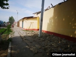 Бузувчилар бригадаси туман марказидаги эндиликда собиқ Хўжалик моллари дўкони томини очиб ташлади. Навбатдаги иш – деворларни бузиш. 2019 йил, 23 май.