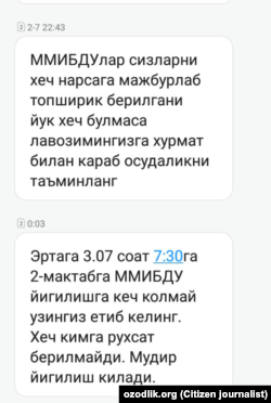 Халқ таълим вазири Шерзод Шерматовдан бу бўйича холис текширув ўтказиш, туман маорифи муҳитини яхшилашни сўраймиз. Жаноб вазир, бизни мажлиспараст раҳбар қўлидан қутқаринг!”