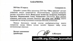(Бу хабар Озодликка 20 апрель куни келган.)