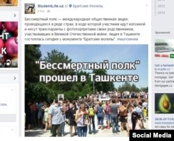 Тошкентда "Биродарлар қабристони" мемориал мажмуасида Иккинчи Жаҳон уруши қурбонлари хотирасига бағишланган "Барҳаёт полк" акциясидан олинган суратлар 9-май куни ижтимоий тармоқларда қўлма-қўл бўлди. Тадбир ташкилотчилари акцияга шаҳар ҳокимияти рухсат берганини айтмоқда. 2-май куни ҳокимият бундай марш режалаштирилмаган, деган эди.
