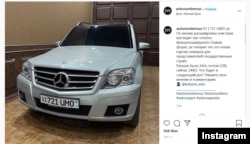 Бу аудио билан бирга, Озодликка Тошкент марказий кўчаларидан бирининг четига тўхтатилган 01 088 UMO рақамли яшил Мерседес машинаси сурати ҳам юборилди.